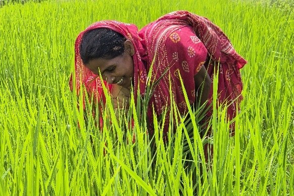 Her association with RDA – RDA’s team members in Jhargram initially tried to convince the WSHG members to form PG but they did not agree. In March 2024 two members of WSHGs were taken to the Jhantiboni village falling under Lalgarh Block for Exposure visit in PRADAN’s working area. They observed PG’s activities there and were convinced after discussion with PG members and visiting paddy and vegetable cultivation in organic method and fisheries also. After returning they shared their experience with their SHG members. Two weeks after they formed their PG and named it Annapurna PG. Urmila Didi is now a member of that PG.