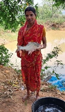 She also got training on Fishery development in small ponds.She released 400 fingerling in her 10 decimal pond and after 10 months she sold 1 quintal fish and earned Rs. 10000/-