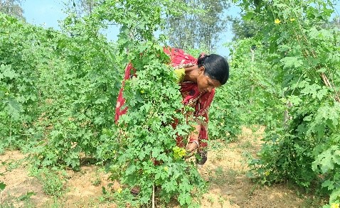 RDA’s Intervention: With support of Usharmukti Towards Evergreen Project by IndusInd Bank Ltd. and intervention of RDA team members, farmers ’group was formed, and they underwent different type of agriculture training for multi crop cultivation practices in different seasons. They cultivated crops like cereals, bitter gourd, oil seeds etc. round the year. She cultivated paddy on 210 decimal of land during last monsoon and harvested 32 quintals and earned Rs. 64,000/- and in winter season, she grew mustard on 42 decimal, producing 1 quintal and earned Rs. 4,200/-, additionally, she cultivated bitter gourd on 42 decimal, yielding 32 quintals and earned Rs. 62,080/-